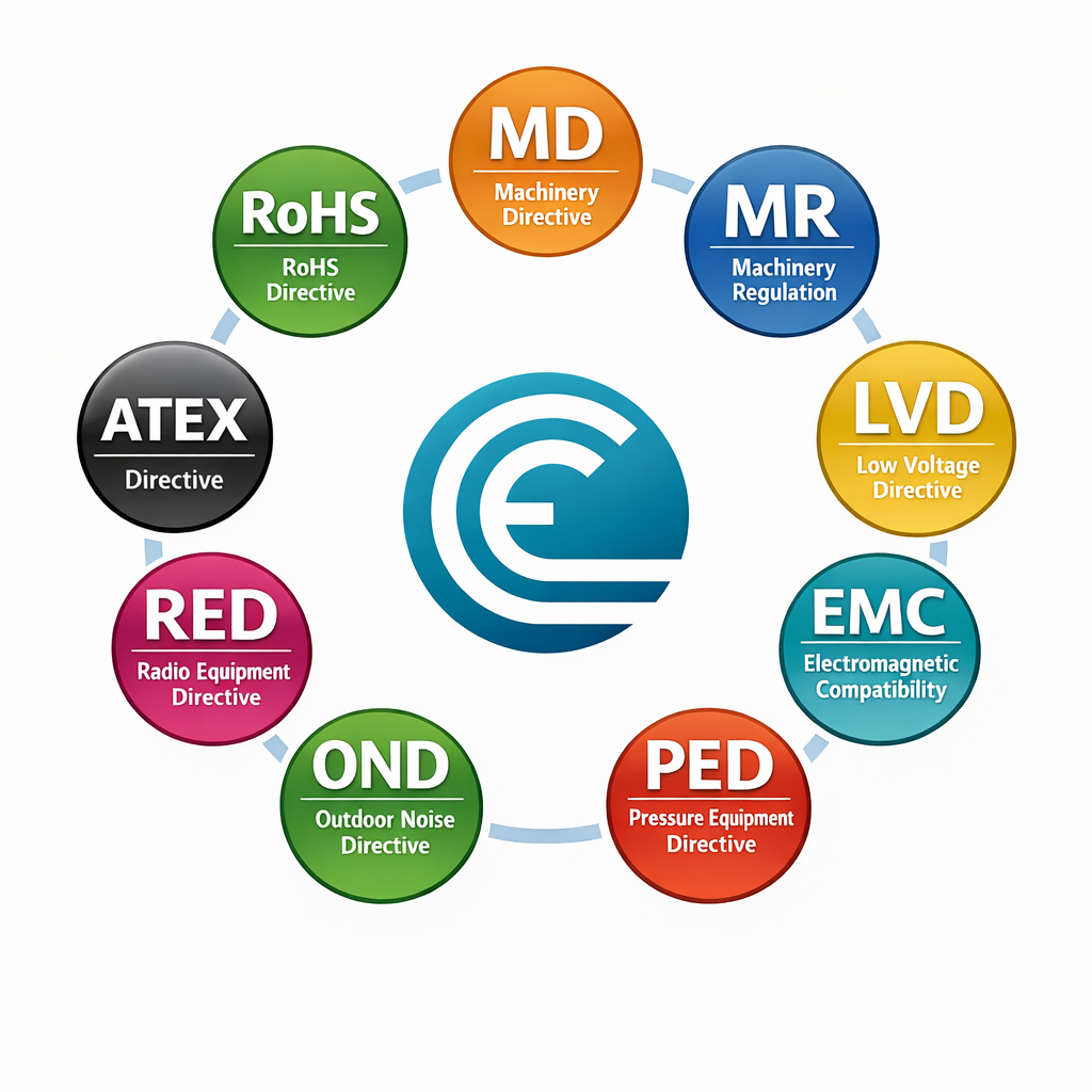 Below are the most frequently used legal directives / regulations in machinery-related CE evaluations and direct links to their orginal documents in EUR-LEX.
