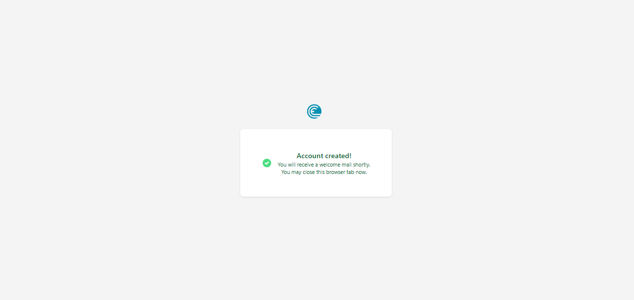 If the account creation was successful, the following message will be displayed. You can close this window.